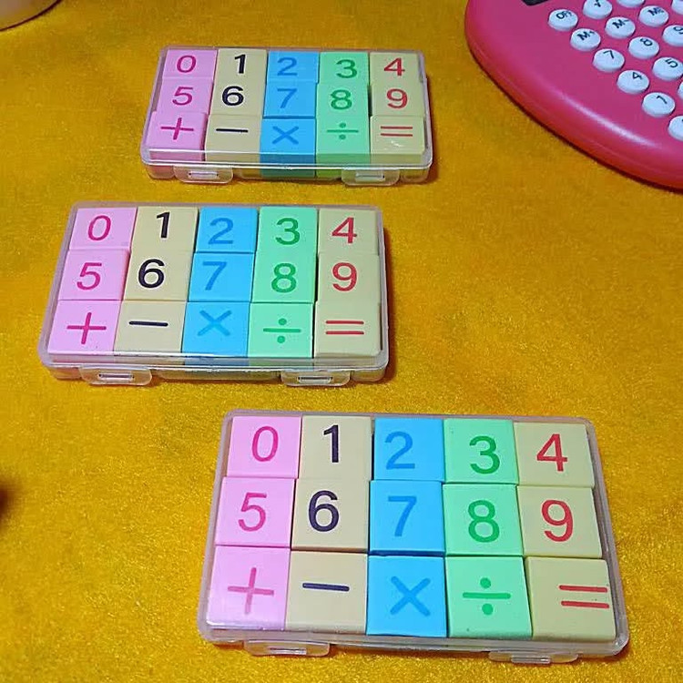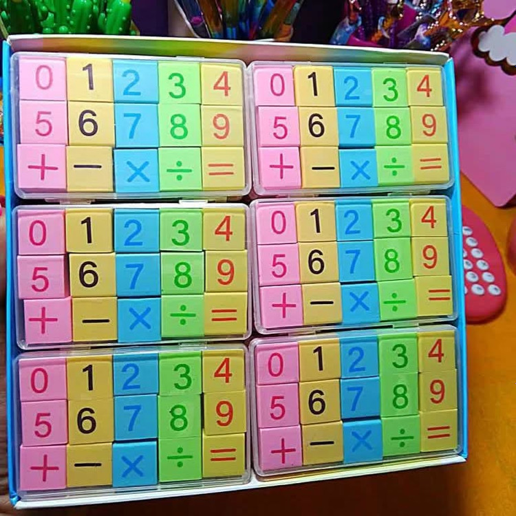 هر پاک کن با طراحی خاص خود، اعداد و عملیات ریاضی مختلف را به نمایش میگذارد. کودکان حین استفاده از این پاک کنهای رنگارنگ، به طور غیرمستقیم با مفاهیم پایهای ریاضی آشنا میشوند: